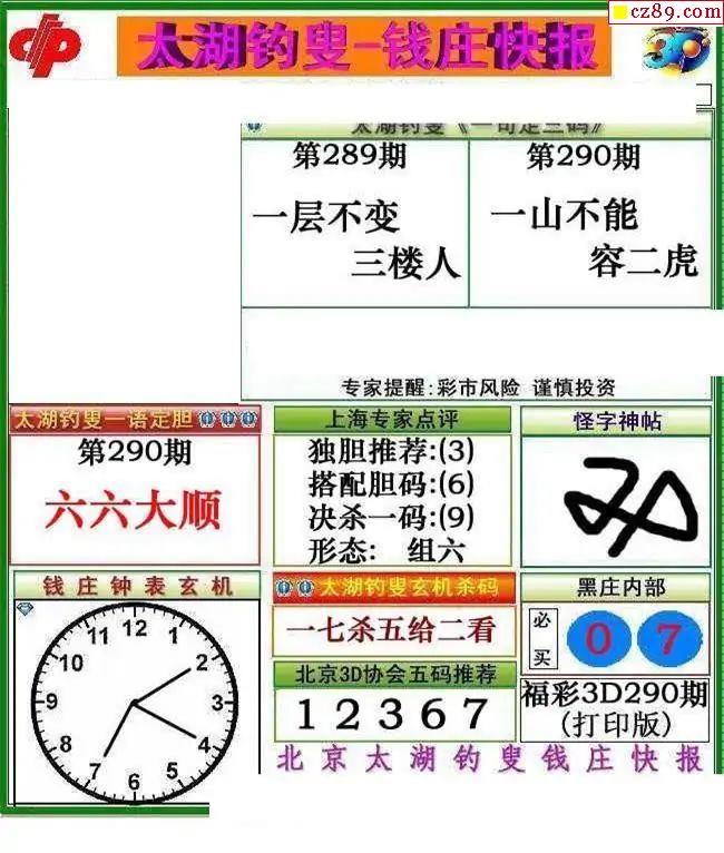 钱庄快报2025290期3d图谜
