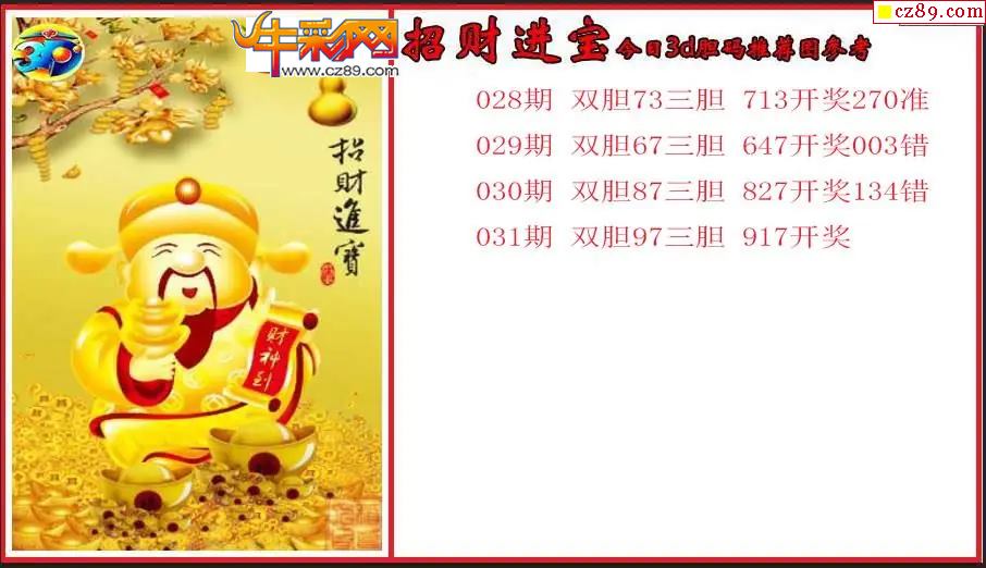 > 26年031期3d 招财进宝今日胆码推荐图参考